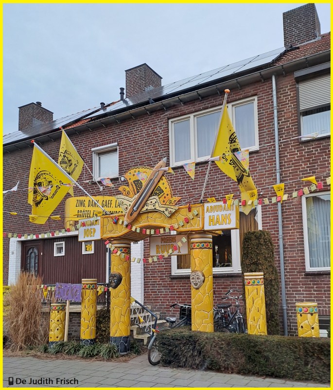 Dans le LIMBOURG HOLLANDAIS, le Carnaval est très vivace. Ainsi, dans la commune de "AMERICA" (HORST) comme dans beaucoup d'autres, les décorations garnissent toutes les façades. Les cortèges se succèdent. ANosVélos!!! 📱De JudithF 2025. Quid de la Belgique ? Bonnes festivités. Une autre image à venir avec "PRINS KARNAVAL".