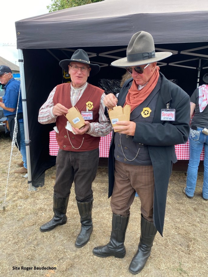 Photo : Des cowboys en tenue d'époque. Pour sûr, en cette période estivale, ces cowboys sont inoffensifs en comparaison de ceux que nous rencontrons chaque jour sur nos routes. Le paquet de frites semble superflus !! #PrudenceDurantVosRandonnées Il y avait même un magnifique campement !!! (21 JUILLET) Anecdote. Un agriculteur ne sachant pas passer dans … Lire la suite « LES COWBOYS DE LA ROUTE ». #2022