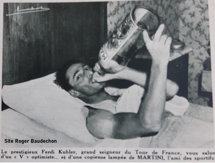 Mis à jour. Photo. Ferdi KUBLER nous invite à l'apéro. 1950. "SPORT CLUB". Belgique. Ferdi KUBLER alors sur le "TOUR DE FRANCE" 1950 avait soif. "MARTINI, l'ami des sportifs". On ne peut pas dire que les pubs étaient raisonnables. Il ne s'agit pas d'un petit verre mais bien d'une bouteille de deux litres. Maintenant, par … Lire la suite KLUBLER DONNE L’EXEMPLE. #1950 #2020